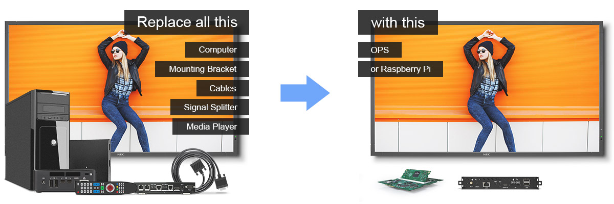 Choose from our wide selection of OPS Slot-in PCs, of the Raspberry Compute module or the Android based Signage Player.
