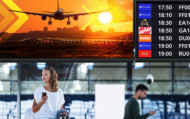 Zurich Airport offers its visitors a first-class flight information system and improves any waiting time with visually appealing advertising on digital displays.