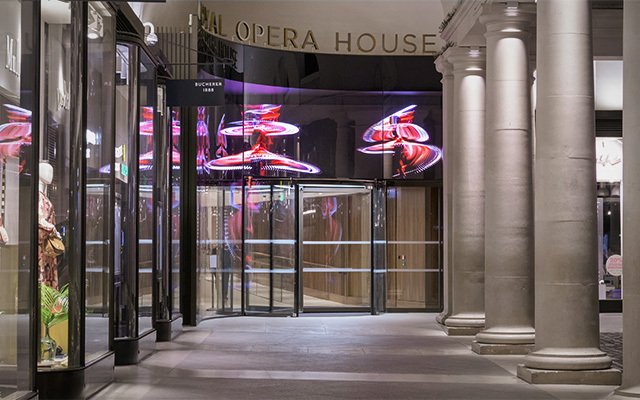 What catches the eye at the entrance to the Douglas store in Munich is a 2.1 meter wide and 6.12 meter high videowall, which immediately attracts the attention of the customers.