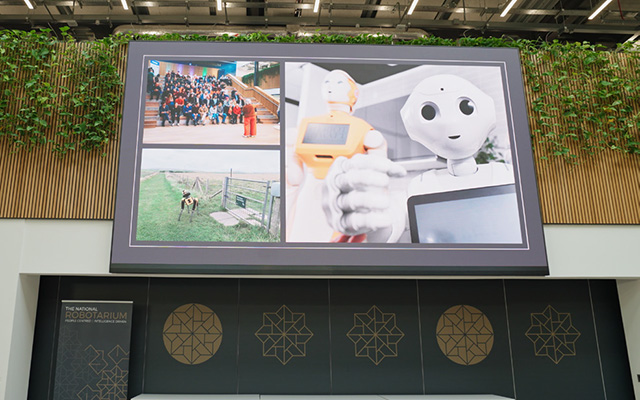 In the Forum, an open plan auditorium space linking two floors of the building’s interior, a larger 220-inch surface comprising 64 x 2.5mm pixel pitch LED-FE025i modules provides the visual centrepiece for long distance viewing. At 1000 cd/m2 brightness and Full HD resolution, the team at the National Robotarium enjoys a digital surface worthy of displaying news of their latest technology developments.
