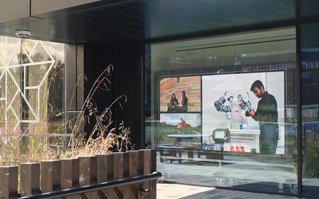The light-flooded atrium style building provides an inspirational hub for scientific research, but a challenging environment for visual devices where readability is impacted by high ambient light. Achievement of high brightness levels coupled with a good cost/ performance ratio was stipulated by Heriot-Watt University.