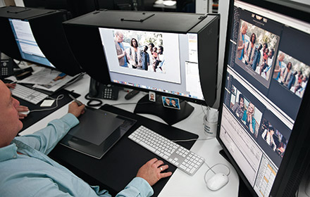 Dealing with anything from basic image enhancement through to very complex creative retouching, the studio processes around 2,500 images per week. Working with many different printing specifications the studio relies heavily on accurate monitors to achieve the best results. The studio has 13 workstations requiring colour calibrated monitors, 3 of which have a dual monitor setup. The additional screen estate enables staff to observe all work passing through the department for quality control purposes.