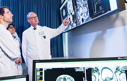 The hospitals then soon put another idea into practice. Up to then, two radiological projectors had cast the X-ray images onto the wall in a 4:3 ratio in the demo rooms in Radiology. “This equipment had proven its worth, but was also costly”, Mr Winkel said. “Each individual projector cost around 7,000 Euros back then, a bulb costing another 700 Euros. As a result of the good quality and distinctly better profitability, we decided to equip each of the demo rooms with two large format displays.” From 2010 on, the hospitals put this into practice step by step, and in the meantime all the five demo rooms have a pair of NEC MultiSync® E654 displays, featuring direct LED backlights for a lean design, low weight and low energy consumption. With this equipment, Kliniken Essen-Mitte has reached the best possible ratio between quality and profitability.