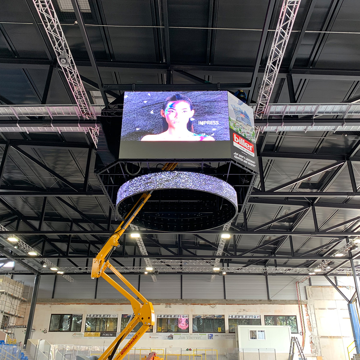 Der von uns installierte 44 m² große LED-Videowürfel und der dazugehörige 15 m lange LED-Ring sorgen bei den Eishockeyspielen in der Landshuter Eissporthalle für noch mehr Spannung. Unsere Displaymodule S[quadrat] S066eH zeichnen sich durch ihre sehr flache Bauweise und ihr geringes Gewicht aus. Damit zählt die Kombination aus Videowürfel und Ring mit einem Gesamtgewicht von nur 2,5 Tonnen zu den Leichtgewichten.