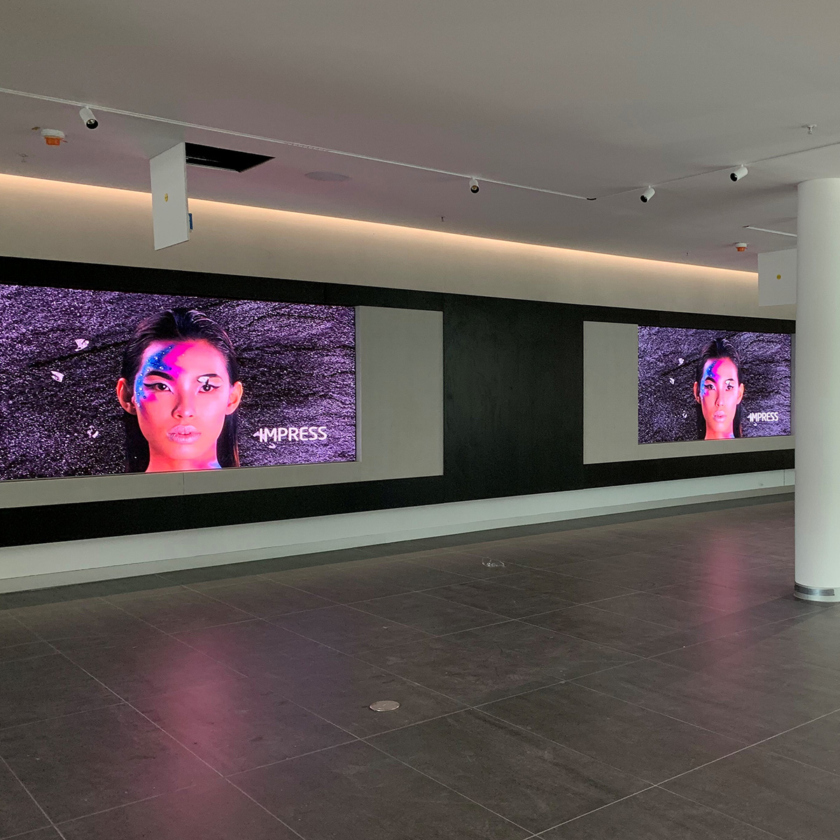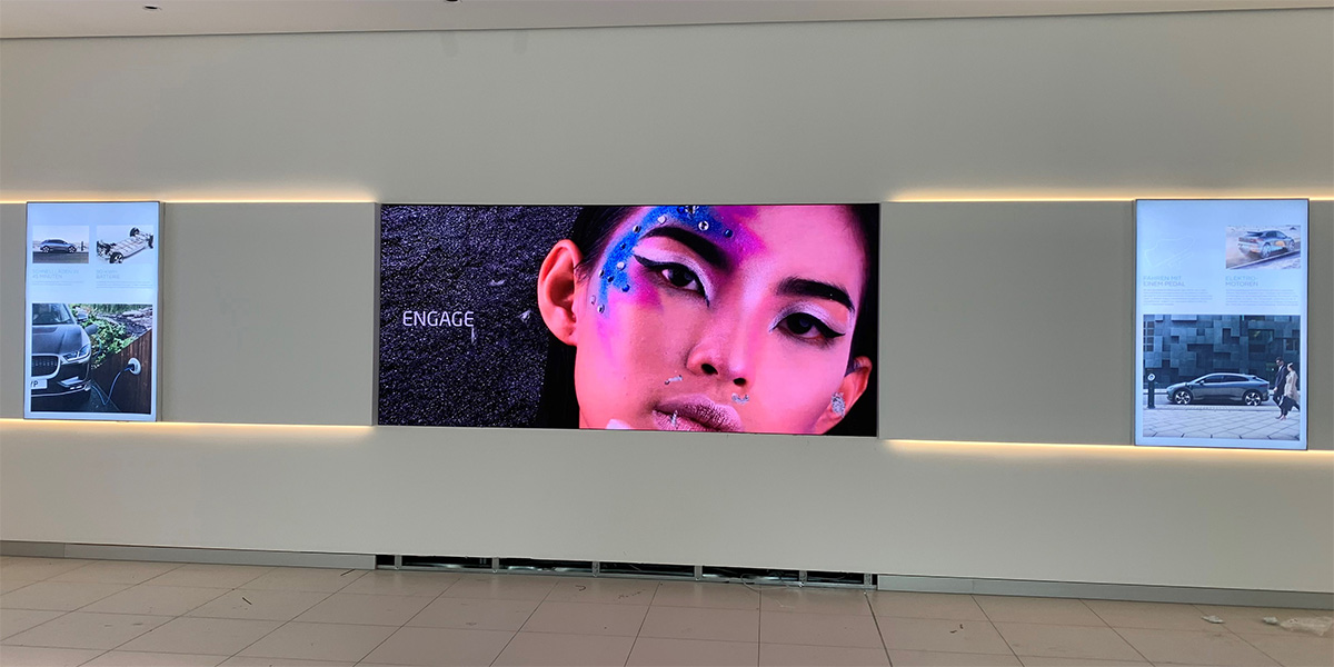 Im neuen JLR-Showroom in München installierten wir insgesamt fünf LED-Displays mit einem Pixelabstand von 1,5 mm und Black Face LEDs. Ihre Helligkeit und Kontraststärke sorgen für hervorragende Bildresultate. Dank der individuell angepassten Unterkonstruktionen fügen sich die Bildschirme perfekt in das Design der Räumlichkeiten ein. Der frontseitige Zugang zu den LED-Modulen ermöglicht schnelle und unkomplizierte Wartungseinsätze. Um auch die Bedienbarkeit der LED-Displays komfortabel zu gestalten, richteten wir unsere S[quadrat] SX[On/Off] Soft- und Hardware genau abgestimmt auf die Kundenbedürfnisse ein.