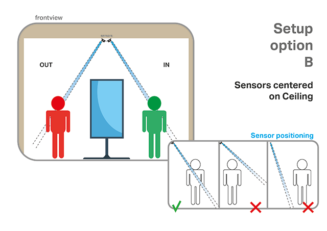 When the X-Eye Presence sensor is placed at both the store entrance and exit, the automated system keeps a dynamic record of the number of current visitors and, based on a real-time comparison to the store’s capacity, displays either an Enter or Wait message via the NEC signage screen.