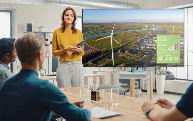 We add value to our display technology through our partnerships, for example, many of Sharp’s Large Format Displays are certified by Cisco to provide a high-quality video experience for Cisco Webex users, including optimised settings for meeting and conferencing. This seamless compatibility ensures a user-centred plug-and-play experience whilst minimising installation costs. See how this enhances the user experience at ISE, demonstrated using our new extra-large size M Series display.