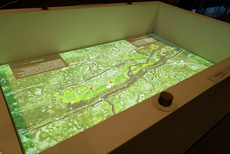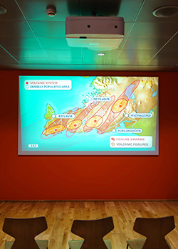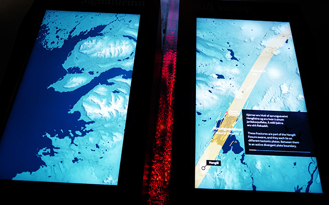As visitors continue their journey, several touch-enabled NEC large format displays give further opportunities to learn more about this unique site. Two table mounted displays, for instance, separated by a red line depict the magma flow between tectonic plates.