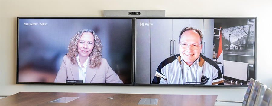 Stefanie Corinth, Senior VP at Sharp, and Jean-Paul Lemmens, Global Procurement Director at Kinly, agree a global partnership.