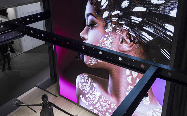 Dynamic artwork displayed on a huge UHD digital canvas from NEC Display Solutions